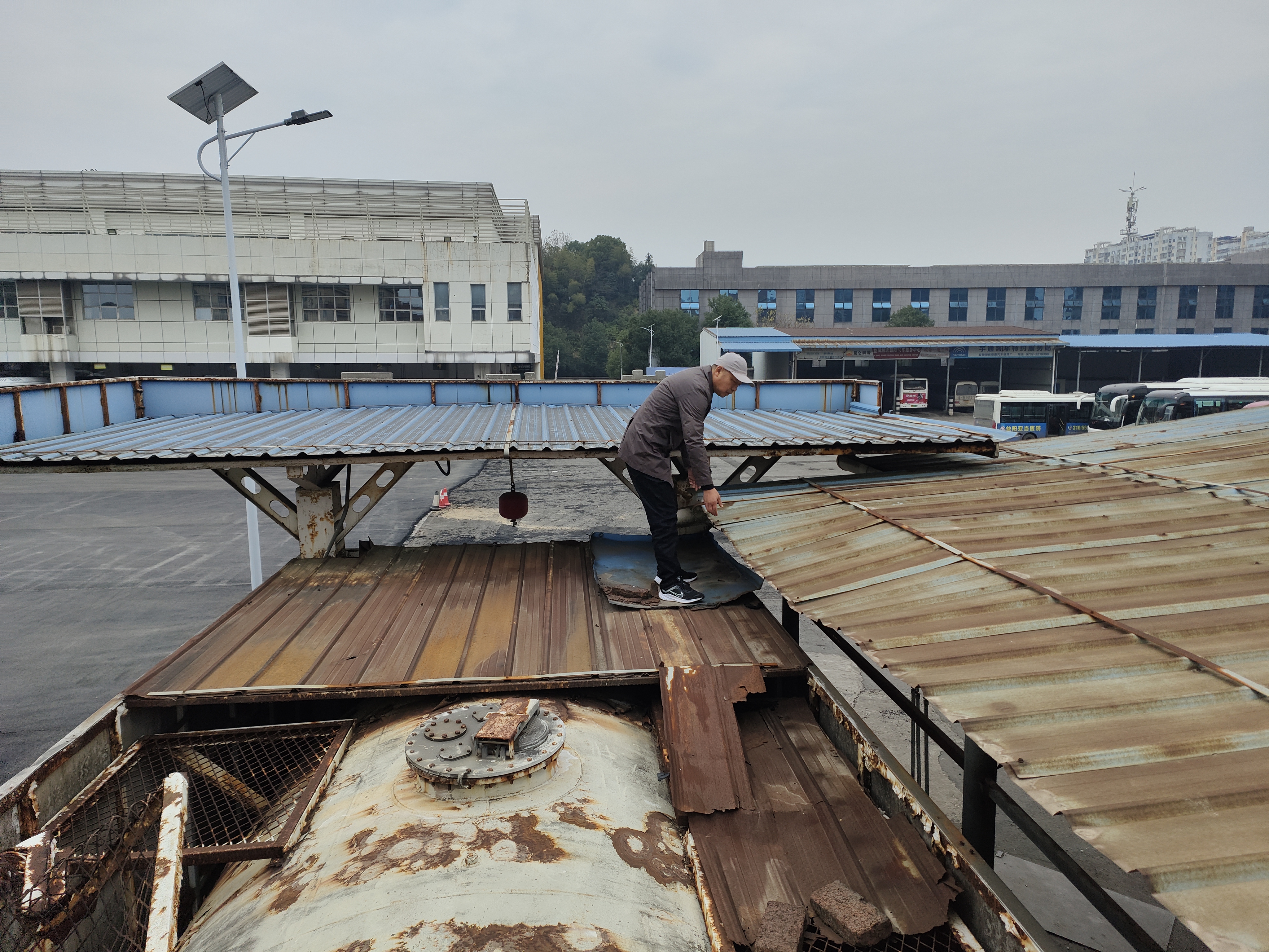 排查前,站場和修理廠已提前制定并完善了冰雪天氣應(yīng)急預(yù)案,做到了責(zé)任到人、措施到位。排查過程中,檢查組細(xì)致檢查了站場辦公用房、充電樁頂棚、候車區(qū)域、修理廠廠房等建筑的屋頂承重結(jié)構(gòu)等情況,及時清除了可能存在冰雪天積雪結(jié)冰隱患;在修理廠區(qū)域,廠長現(xiàn)場展示了已落實的冰雪天氣防護(hù)措施,其中包括專門設(shè)置的防護(hù)桿,用于對頂棚積雪進(jìn)行加固和支撐,有效提升了屋面結(jié)構(gòu)的安全性和穩(wěn)定性。檢查組對修理廠前期準(zhǔn)備工作給予肯定,并要求繼續(xù)加強(qiáng)巡查頻次,一旦發(fā)現(xiàn)結(jié)構(gòu)變形等情況,立即采取應(yīng)急處置措施。